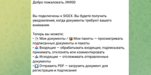Настоящая инструкция описывает шаги для регистрации в Telegram bot SIGEX для последующего получения уведомлений и подписания входящих документов. Также SIGEX bot позволяет загружать документы пользователя за последние 30 дней.